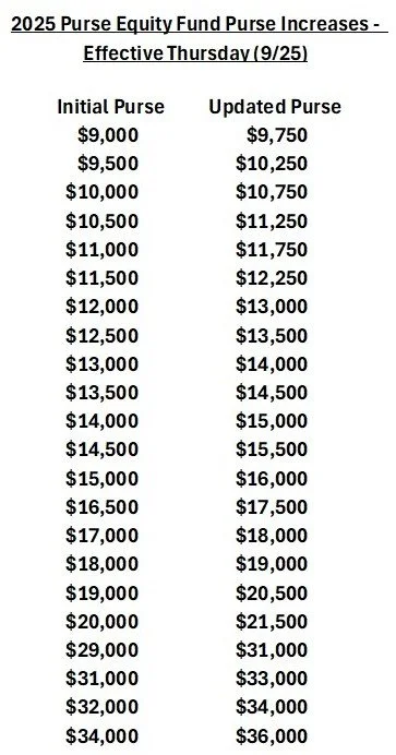 Those purse monies have now arrived in the thoroughbred purse account at Hawthorne. Purse increases will start Thursday, Sept. 25, and last through the end of this meet on Sunday, Nov. 2.